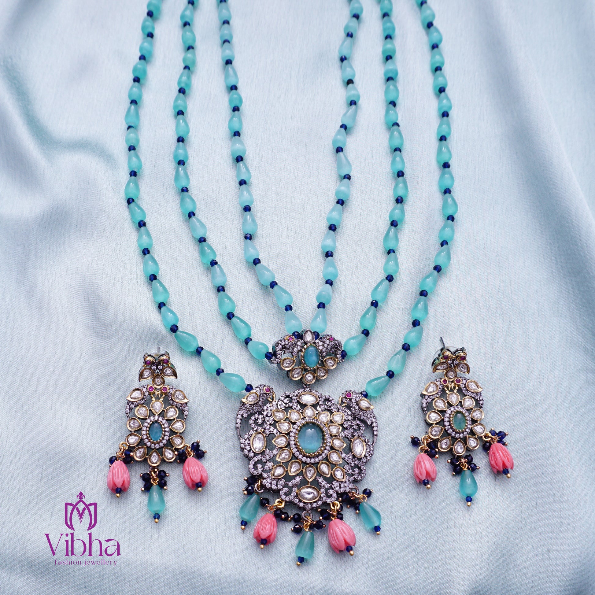 3-Steps Beads Haram with Peacock Motifs & Polki Stones