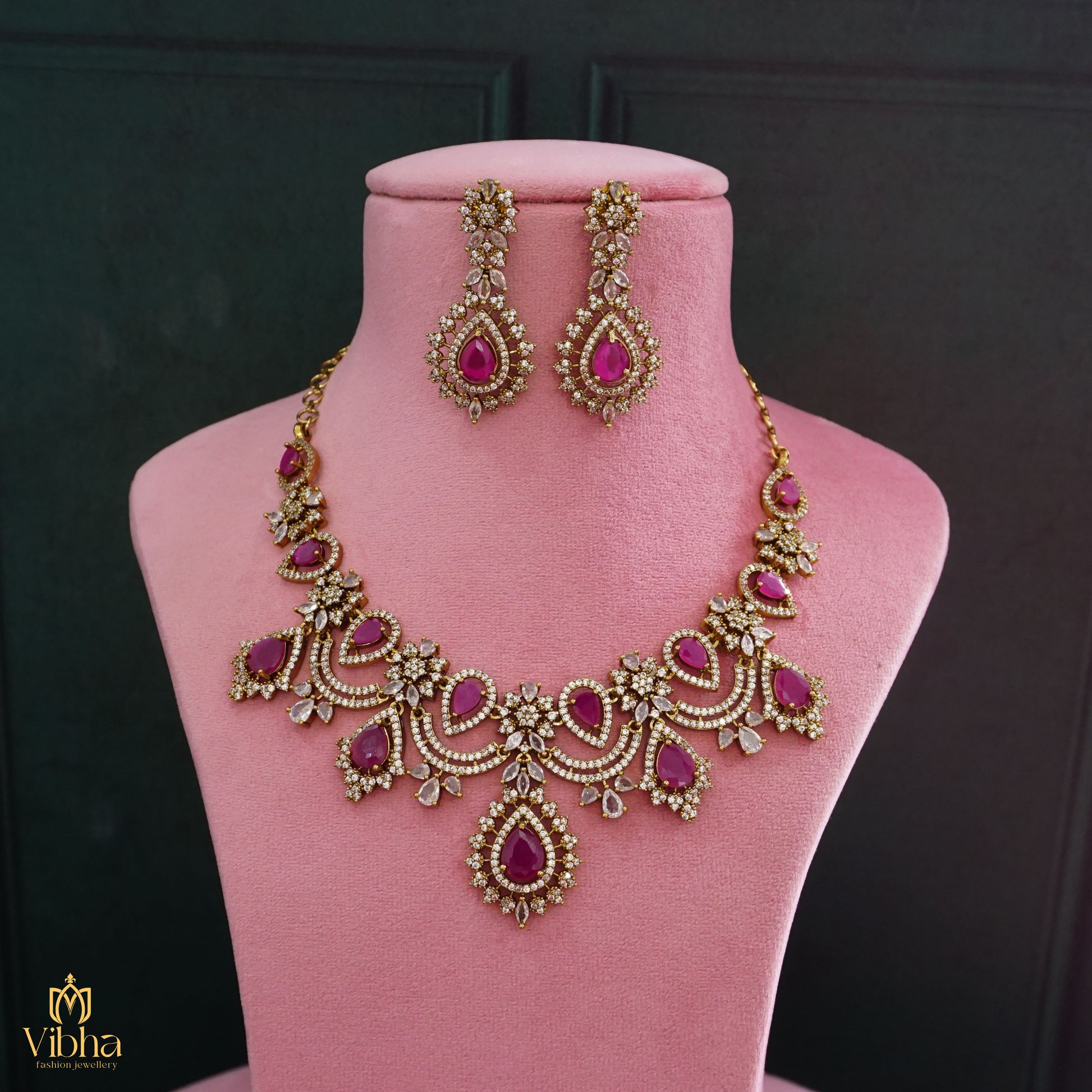 Crafted with meticulous attention to detail and plated with premium Mehandi Victorian finishing, this set radiates an antique charm that’s perfect for brides, festive occasions, and grand celebrations. Available in four stunning variations – Green, Mint Pink, Ruby, and Violet – it’s a versatile treasure for your jewelry collection.