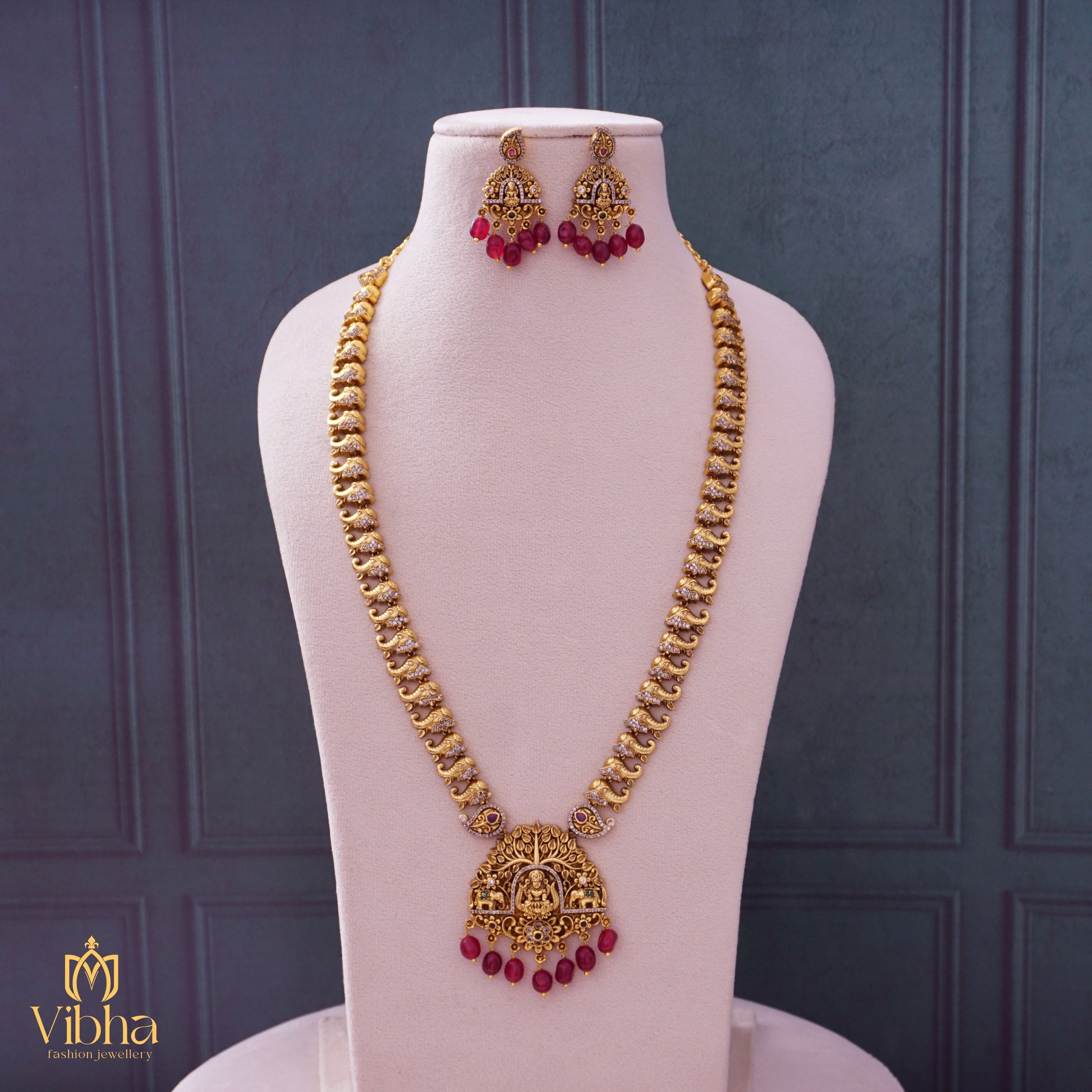 Lakshmi Devi Designed Haram Set with Elephant Motifs